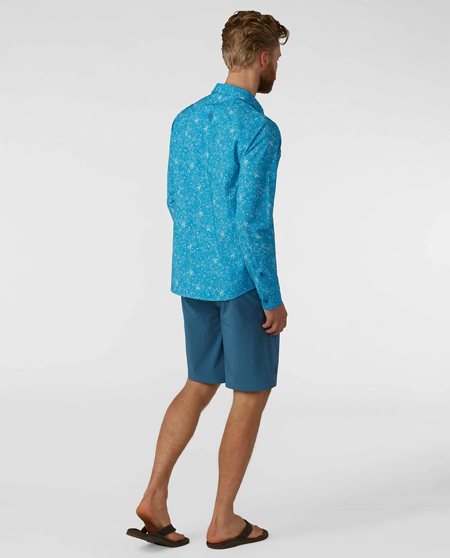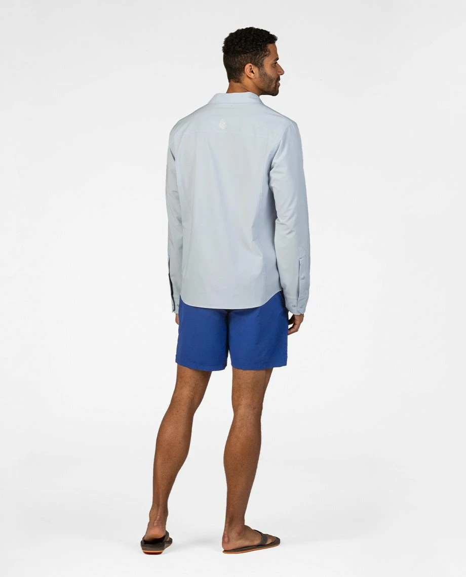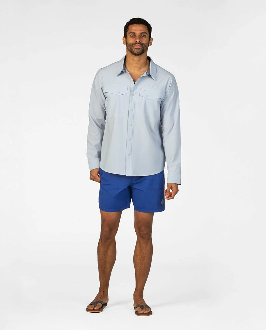Standard uniform for river guides, boaters and fishermen from the Snake to the Salmon, the CFS Shirt provides four-way stretch and UPF 50+ sun protection with the style of a classic collared button-up. Made with Sphero™ HO stretch poplin polyester, the CFS dries quickly and moves with you as you cast, row or paddle. An oversized sun collar increases protection on bright summer days, contrast bar tacks reinforce critical seams and an oversized buttonhole at the chest pocket lets you hang your sunglasses or run a headphone cord. Two snap chest pockets stash tippet, a small fly-box or other river essentials.