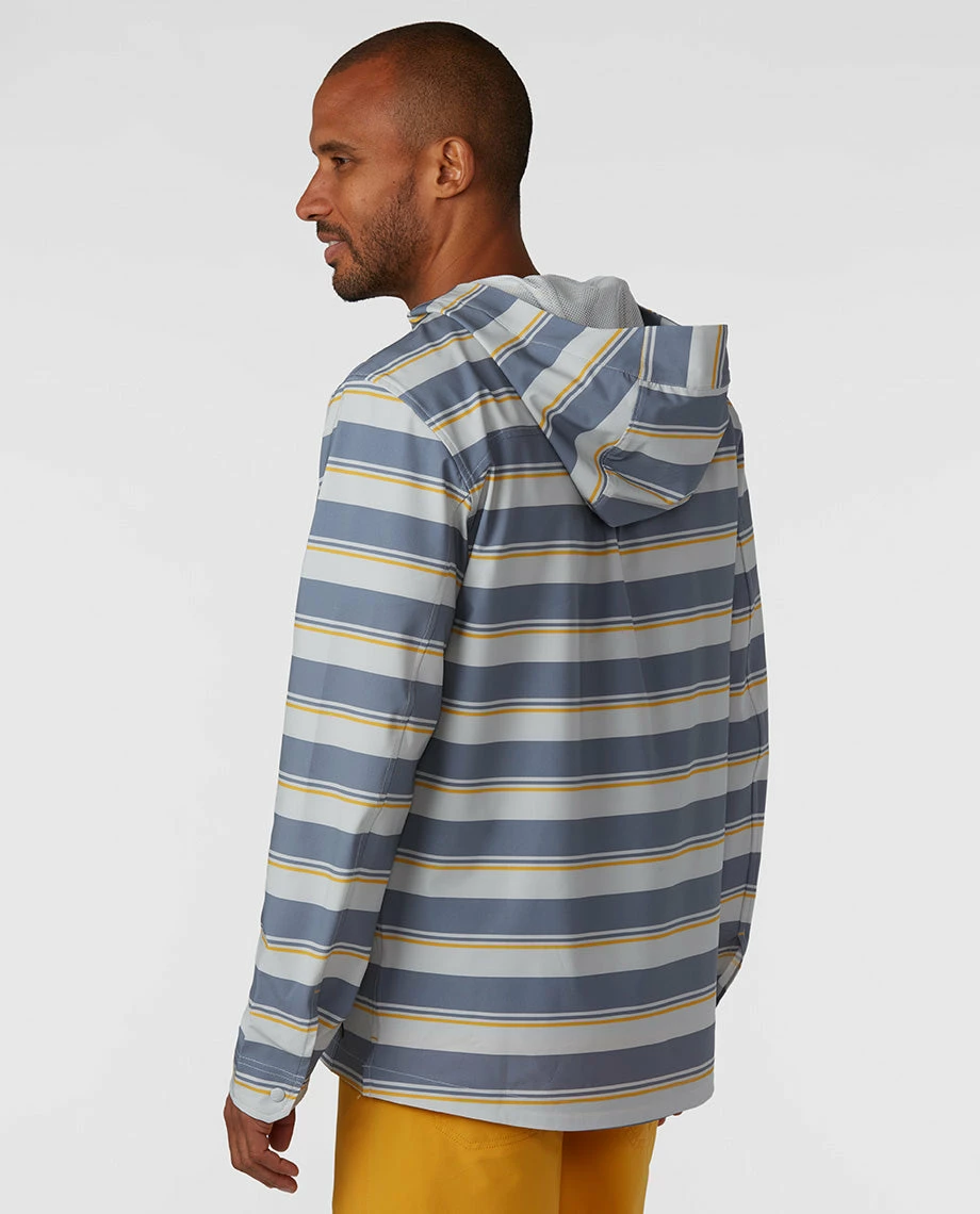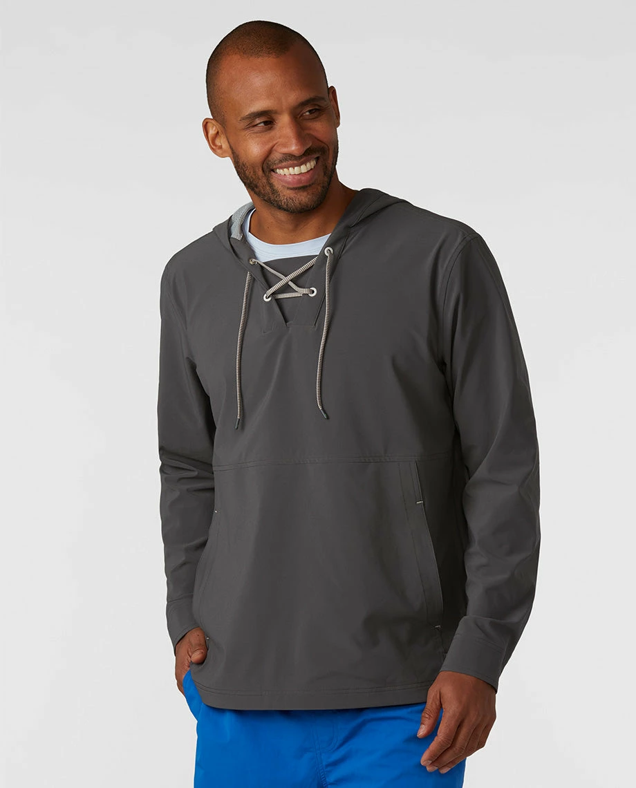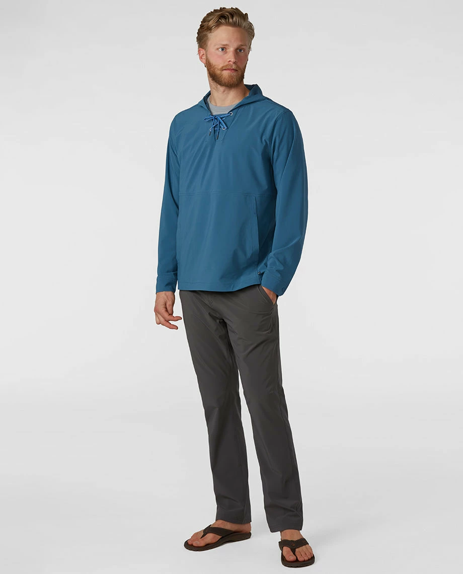 Inspired by Baja surf hoodies, our alpine lake and Western river evolution pairs UPF 50+ protection, four-way-stretch and a water-resistant, quick-dry finish. Tailor-made for all-day drifts, glaciated climbing or July days at the lake, it blocks overexposure with a fixed sunshade hood, a front brim and a lace-up front placket. Two-way cuffs stay put rolled or pushed up, while a combo of interior mesh and a side-slit vent keep it cool. Hands hang comfortably in the kangaroo pocket.