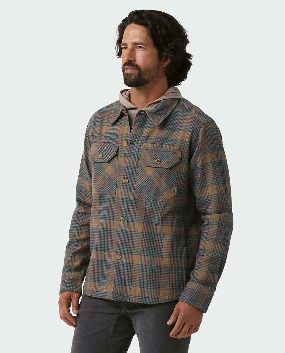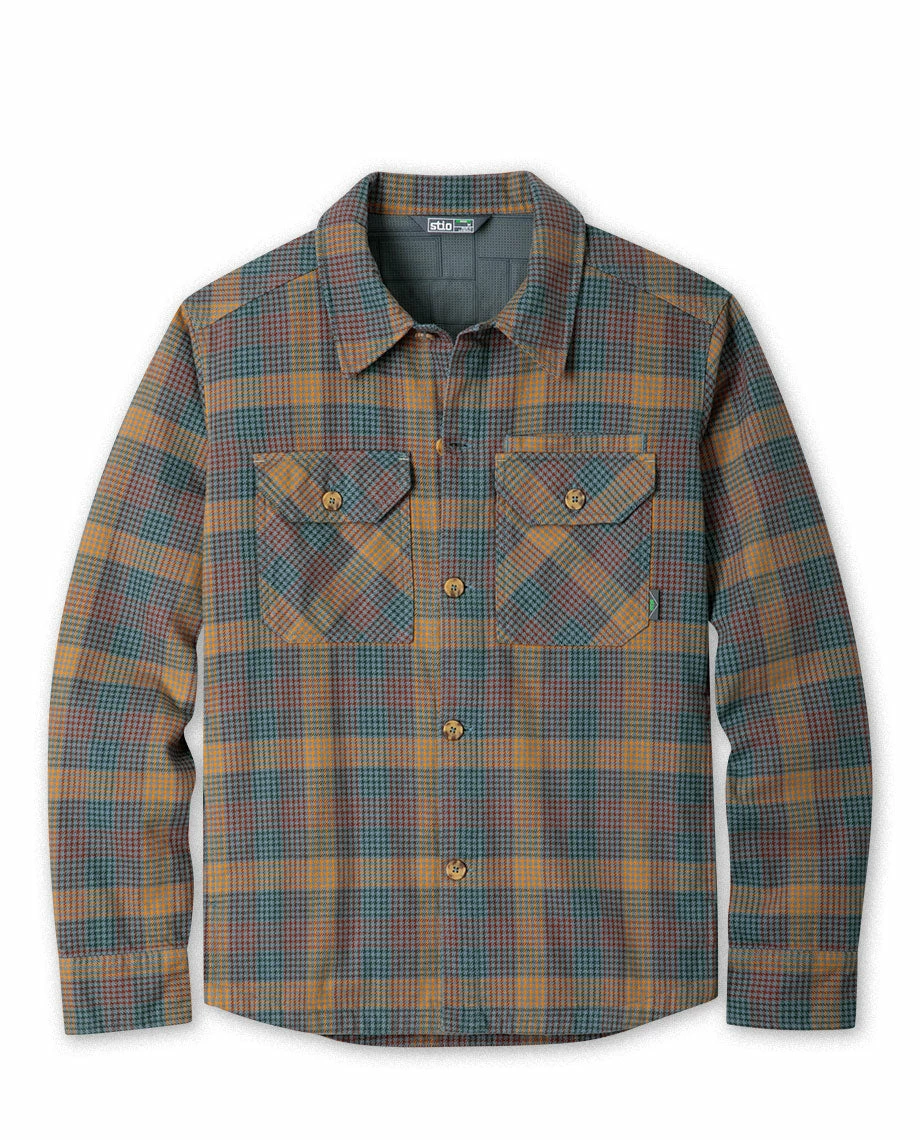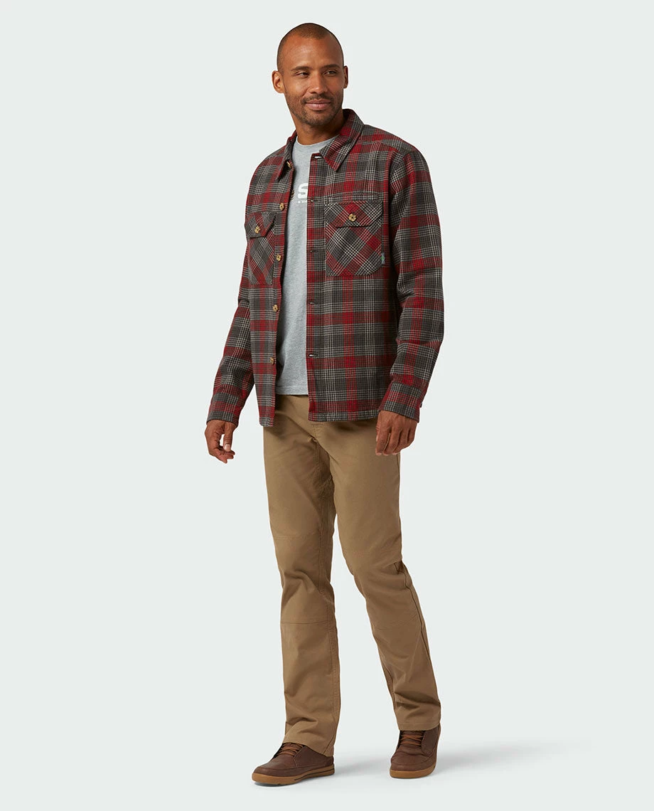 We built our burliest flannel to honor the caretakers who keep the fires stoked, the cordwood stacked and the pow slayed deep in iconic touring zones. For the rest of us, their namesake overshirt is tailor made for cabin trips, spring shreds or waxing up the sticks in an unheated garage. Heavyweight by material, it draws its backwoods character from double-brushed, 300-gram organic cotton flannel in a custom Stio® yarn-dye plaid. Adjustable cuffs roll easily while a modified shirttail hem wears tucked in or left out.