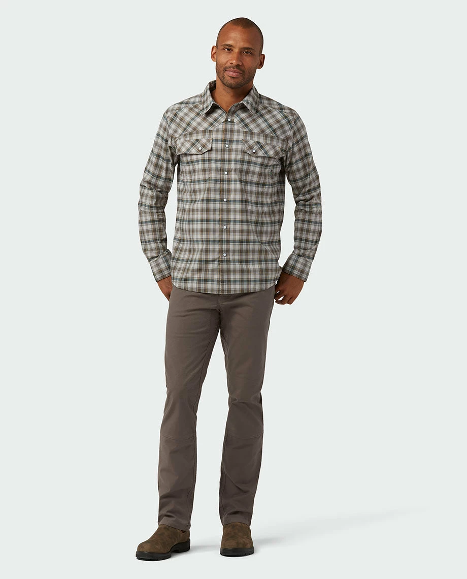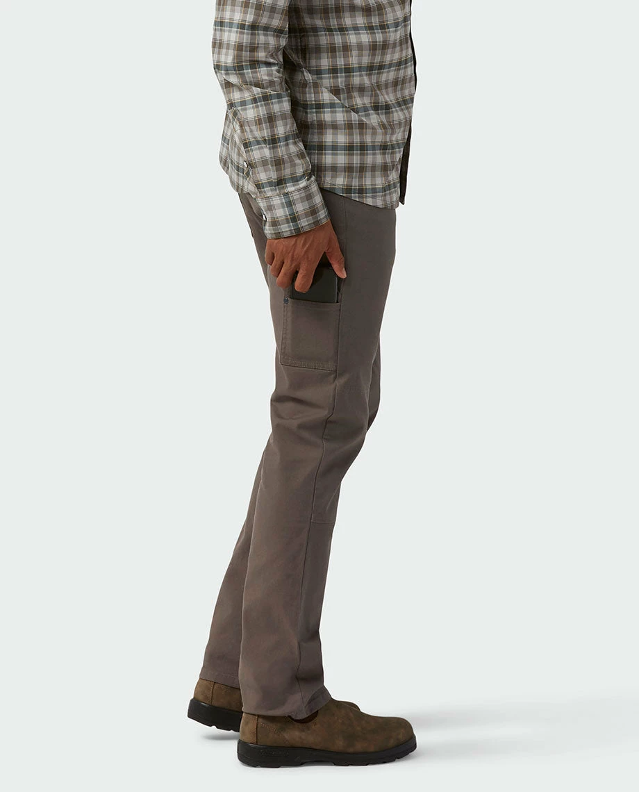 When toughness is a mandatory—at the ranch, on the road or just tending the back forty—our Rivet Canvas Utility Pant is up to the task at hand. The grinding, gritty, western mentality is reinforced by double-layered knees and resilient but responsible, stretch organic cotton. A classic five-pocket design also includes a back thigh utility pocket that stashes a phone or tool within easy reach. The straight leg fit adapts to in-town or off-the-grid situations while signature elements such as three peaks embroidery and custom Stio® rivets identify with the local mountain landscape.