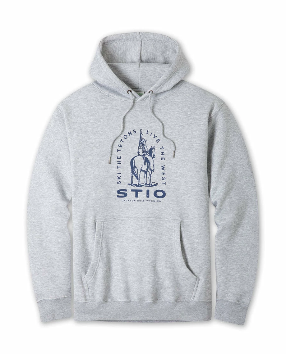 Featuring a backcountry cowboy and a mantra of the mountain life, all printed on an ultra soft and cozy hoodie. Hand-drawn illustrations by Stio graphic designer Kika MacFarlane are printed on these super soft classic hoodies.