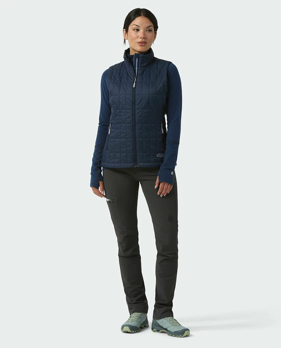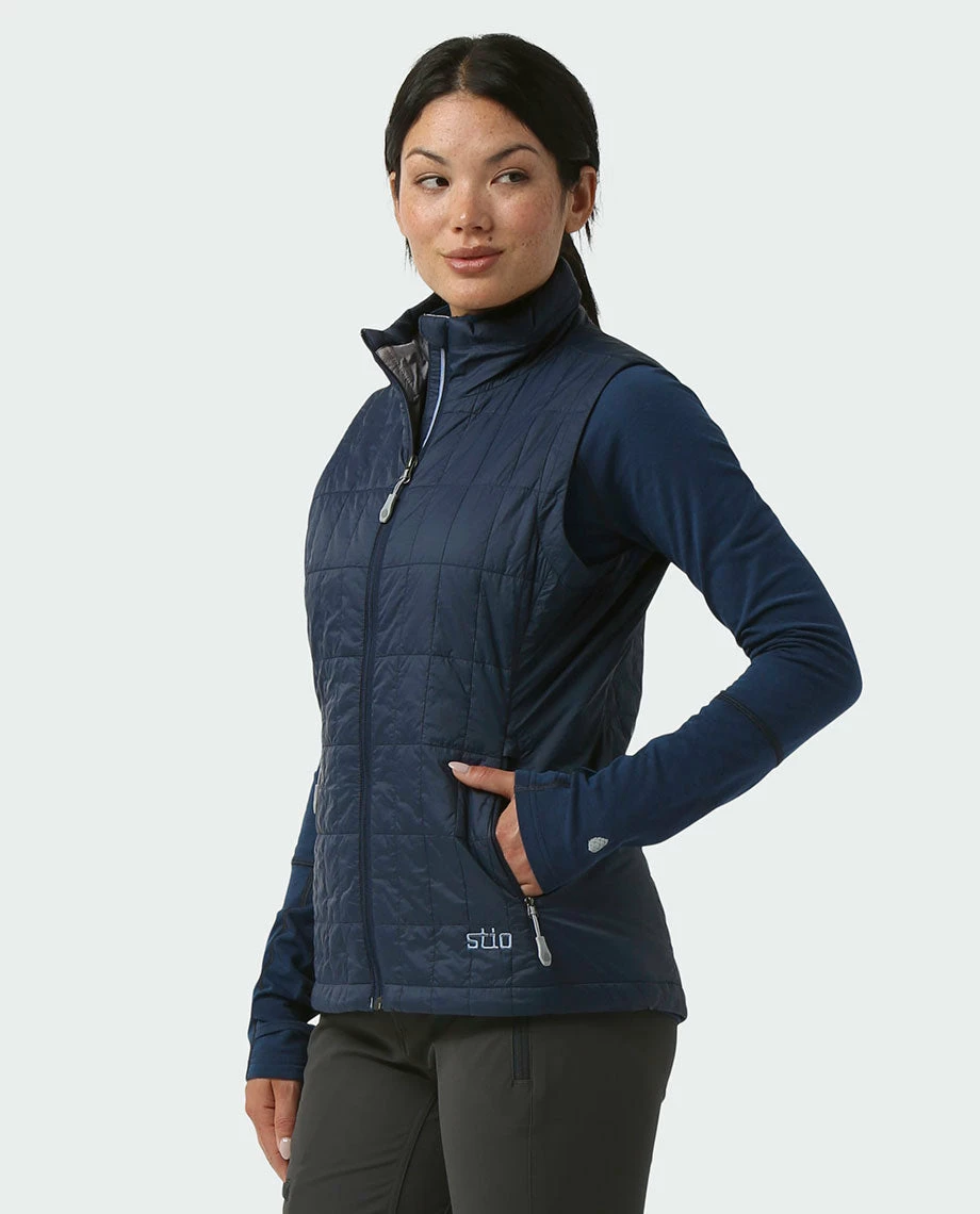 As a layer on fall hikes, camping trips or early morning bike commutes, the Azura Vest provides lightweight and compressible insulation you can depend on. It features modern quilting filled with 60g of PrimaLoft® Gold Eco, princess seams for a feminine fit, a fully adjustable hem with low-pro cord locks and zippered hand and interior pockets.