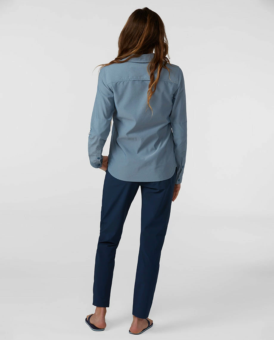 To, from, near or actually floating on water—a flattering fit and trimmer leg shape have made our waterside pant a summer favorite on the raft, at the lake or around the campsite. Balanced between durability and quick-drying character, the Sphero™ HO poplin is matched for wet wades, stream crossings, river trips or drift boat launches. Four-way stretch adds flexibility and the UPF 50+ rating ensures legs won’t get burned or baked. Exposed back zippered pocket, stitching detail and zip-fly styling maintain sophistication even way off the grid.