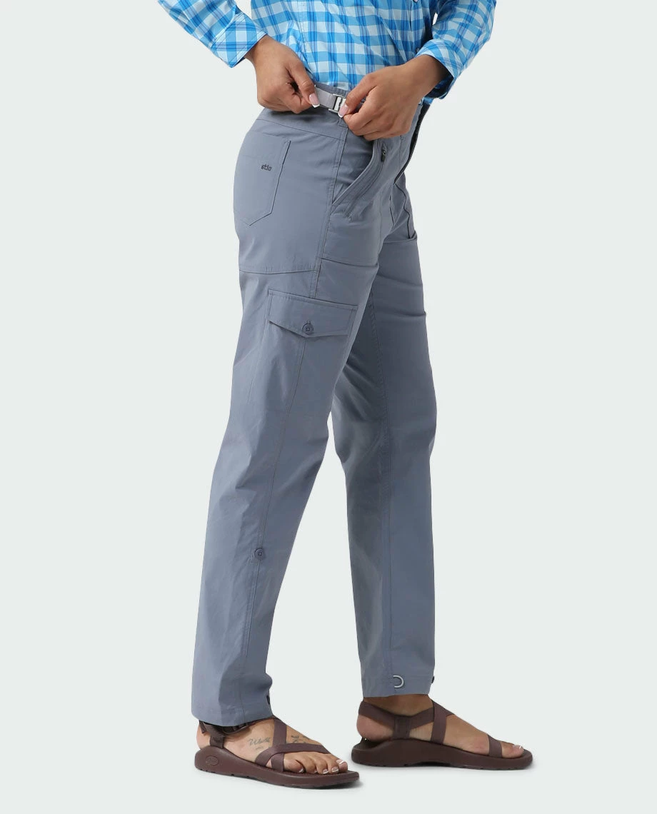 Navigate brushy riverbanks, multi-day backpacking trips or the backroads of a hut-to-hut trip with ease in the quick drying, durable Cut Bank Pant. Offering odor-resistant 2-way stretch nylon with a DWR/quick dry finish and UPF 50+ sun protection, these lightweight pants can stash easily in a pack and go longer between washes, keeping you on the trail, trek or trip for longer. Snaps at the ankle or roll-and-cuff buttons at the calf pair smoothly with wading boots or go low-profile for splashy crossings. Small necessities stash easily in the accessible yet secure front pockets and buttoned thigh cargo pocket.