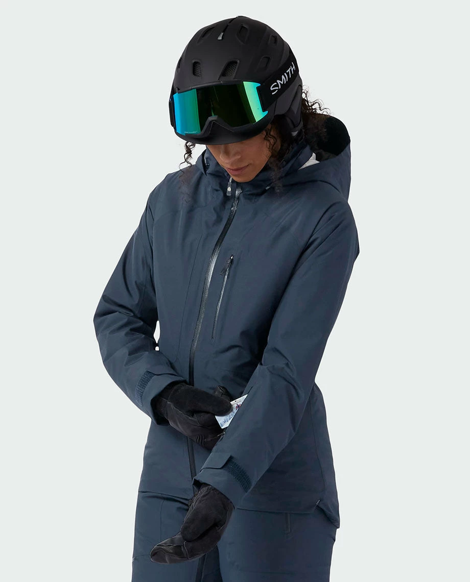 Cold, deep or stormy ski days call for both breathable warmth and waterproof protection. Our ski-hill special gives you the insulated warmth you want while staying lightweight and low-bulk, delivering both on days that extend from early starts to extended après. Built with a conscience, fusing recycled-content with GORE-TEX 2L technology and a waterproof/breathable, element-shedding PFCEC-free DWR finish. Internally, its tailored with Primaloft® Silver Eco—80g in the torso, 60g in the sleeves—to warm up those cold chair rides or lift line waits. An adjustable helmet-compatible hood, venting underarm zips and a fixed powder skirt provide tramline to sidecountry function.
