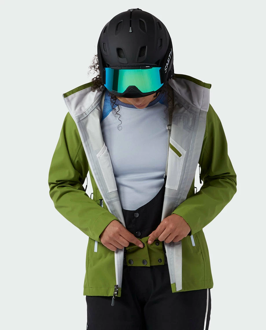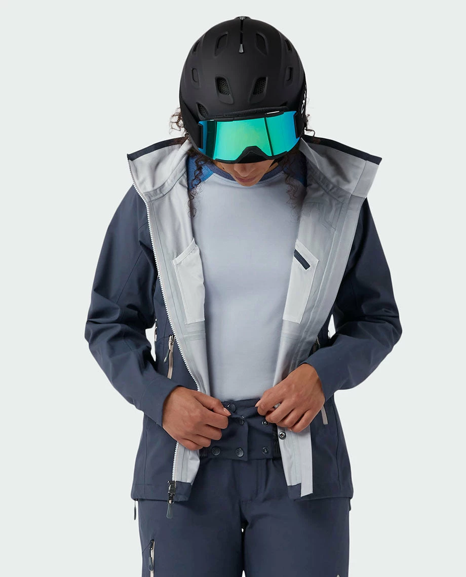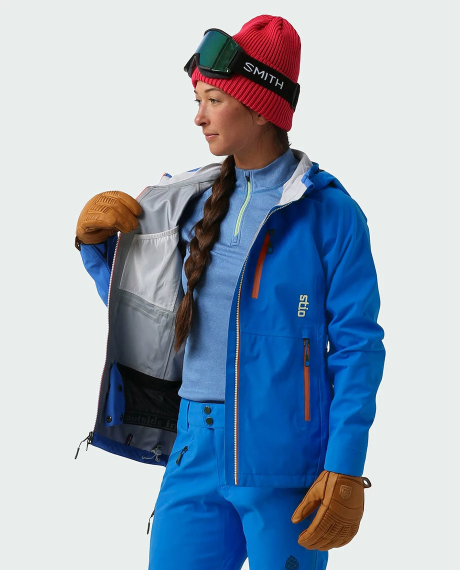 - Adjustable snap back snow skirt with custom Stio® ‘Let the Outside In’ gripper elastic and Stio® metal snaps
