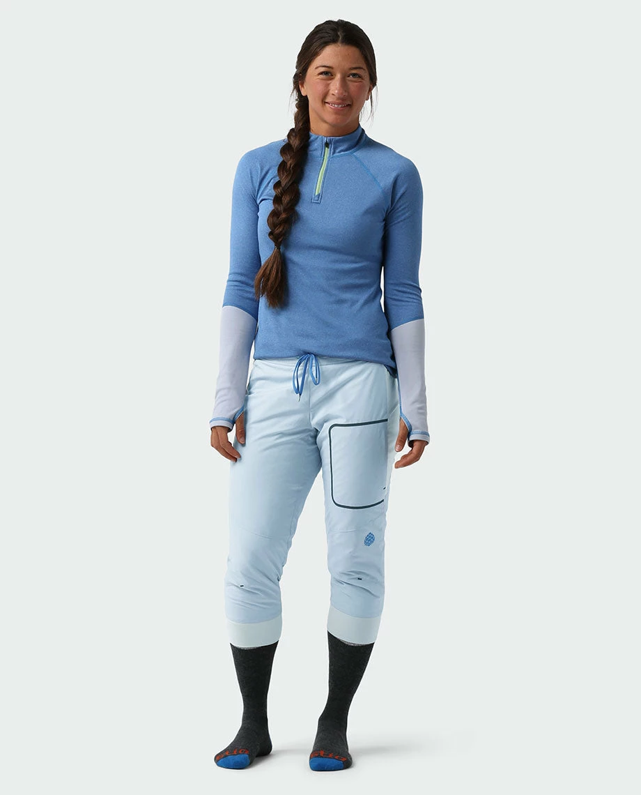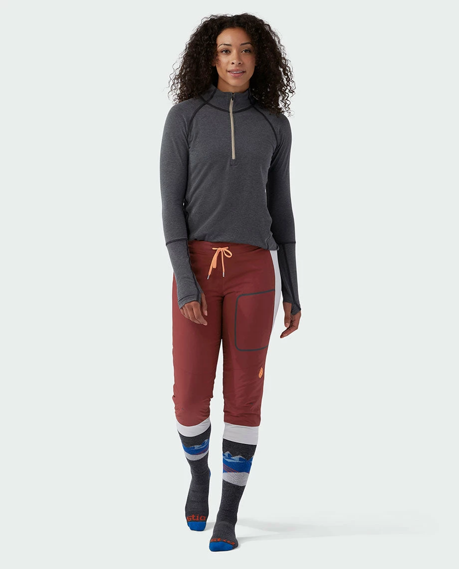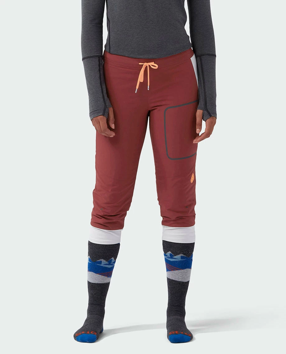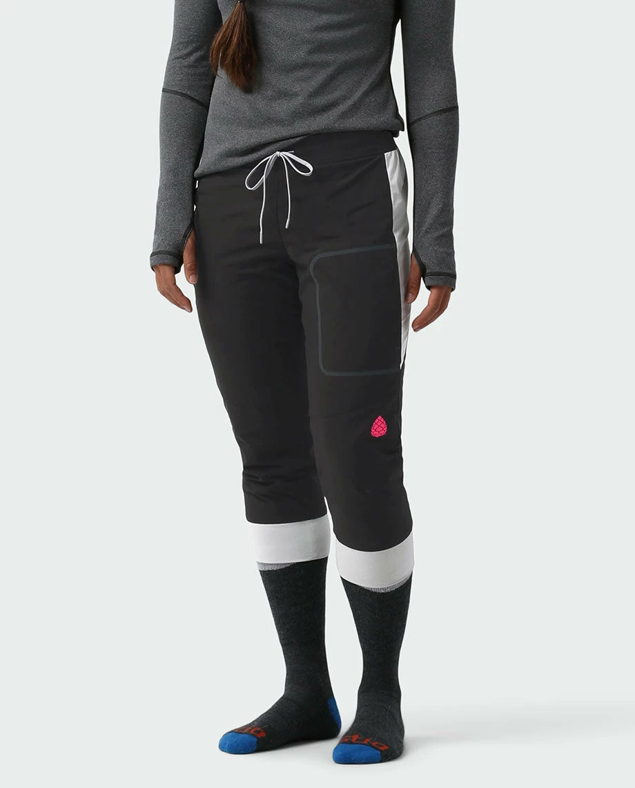 We’re obsessed with the Fernos Knicker, it finds the fine skier’s line between frictionless mid-layering and highly breathable warmth – think super light, silky-smooth comfort for a chilly chairlift ride, a cold wind and a cozy apres. The articulated, capri-length midlayer packs Peakfillâ„¢ Active Insulation 40g that adds warmth during cold smoke conditions yet allows airflow when gaining vertical. A true skier’s silhouette stops short of buckles to eliminate bunching, binding or hassling when booting up in the lodge. Side stretch panels enable a full range of motion, while an articulated cut shows athletic shape at the ski cabin or in the seasonal locker room.