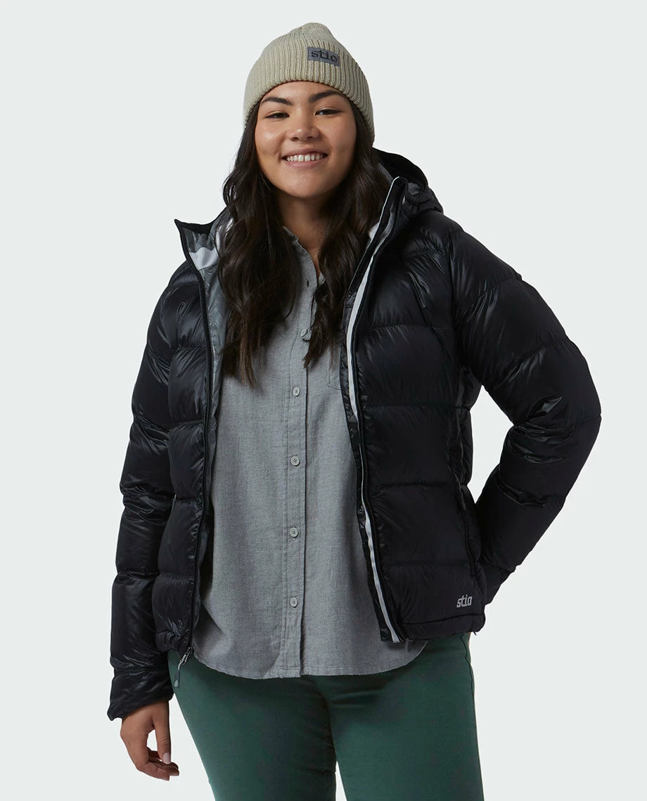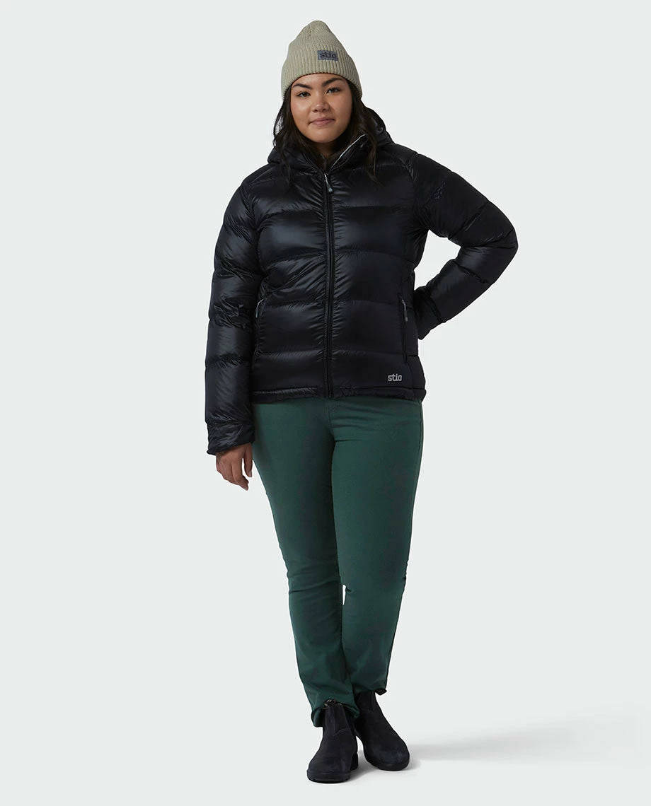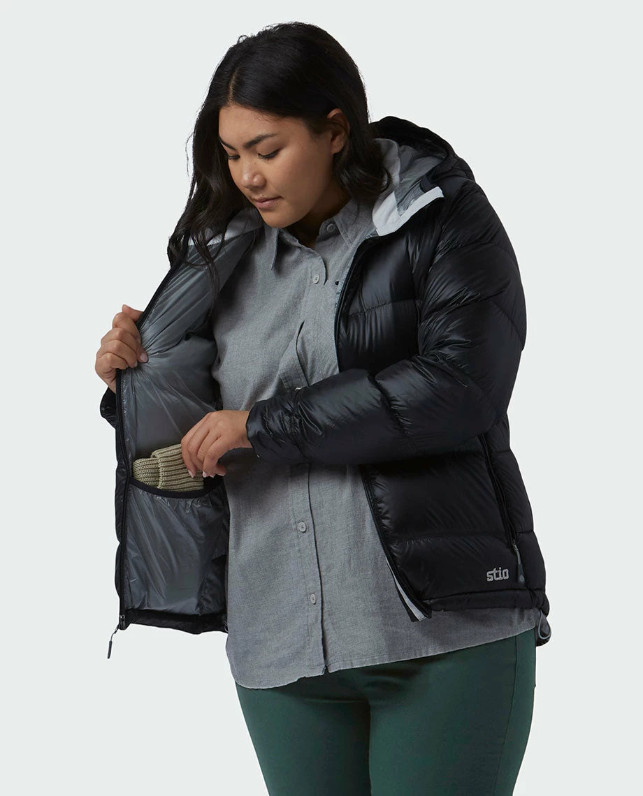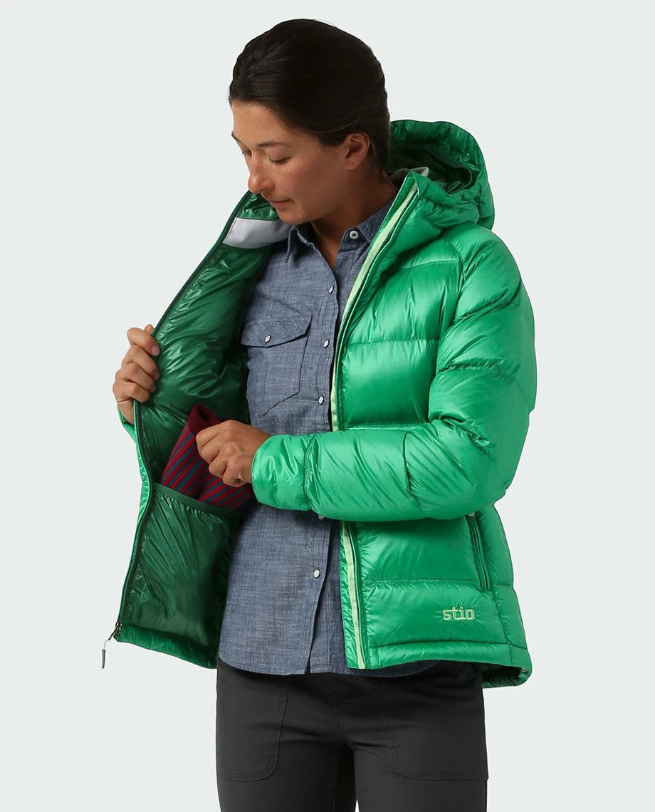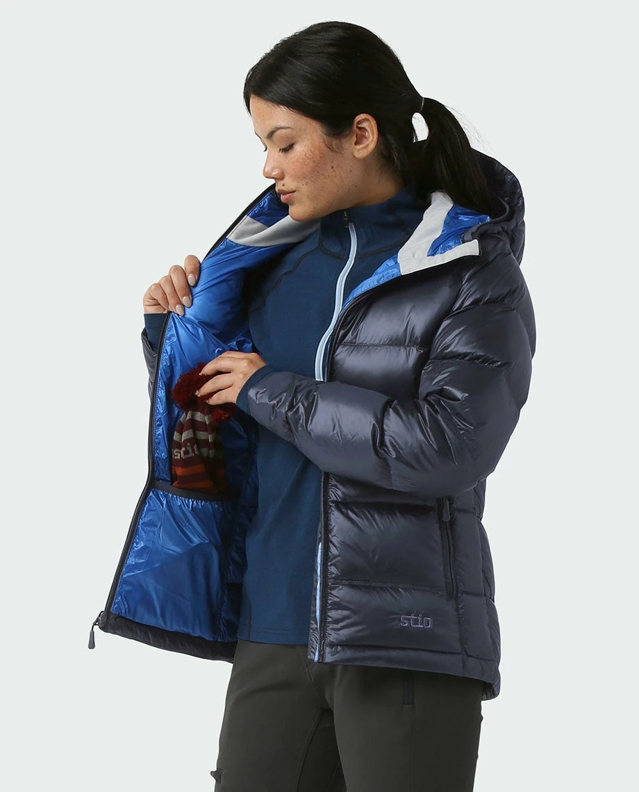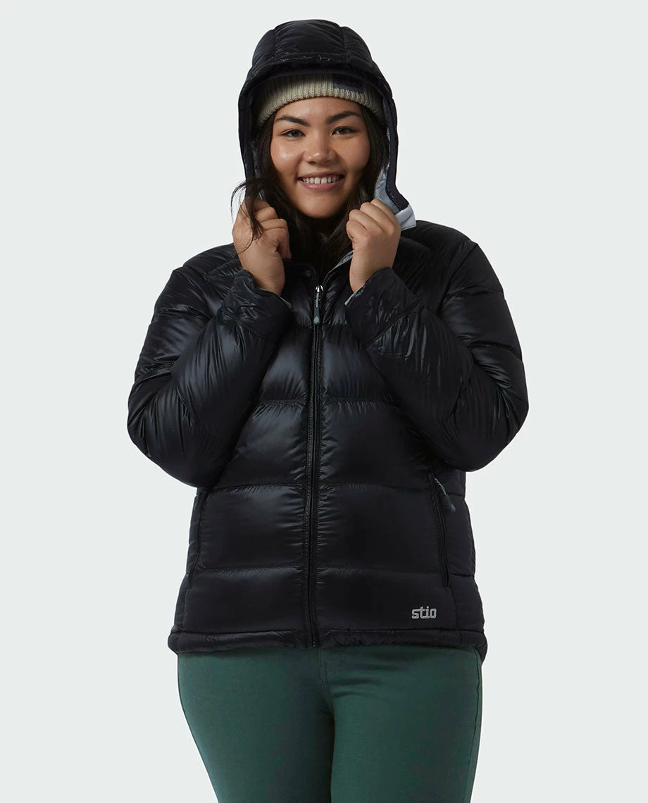 - Stio® grosgrain finish at center front interior draft flap protects zipper teeth and seals out elements