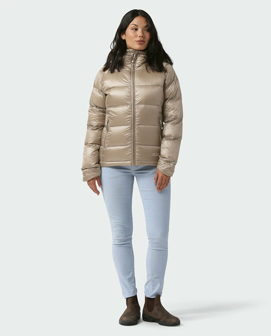 - Soft, supple hand feel with high loft down insulation to retain heat