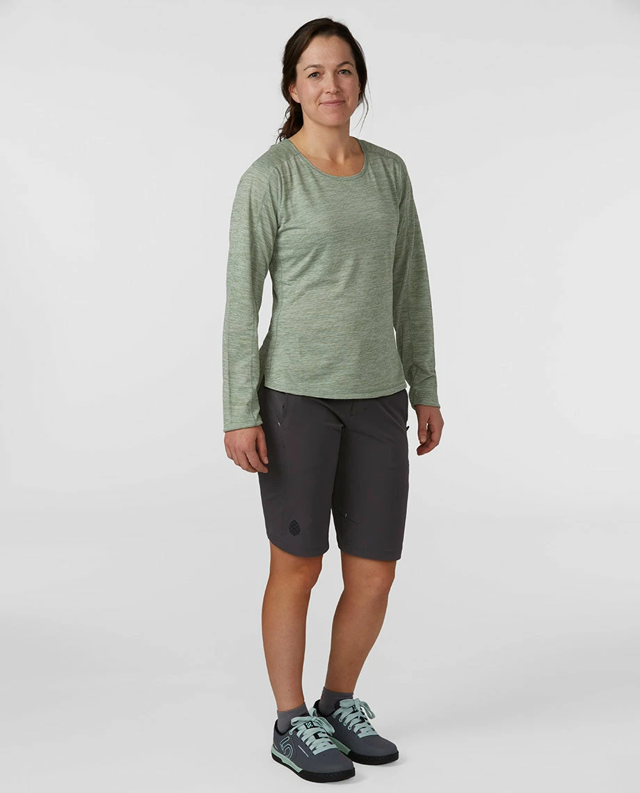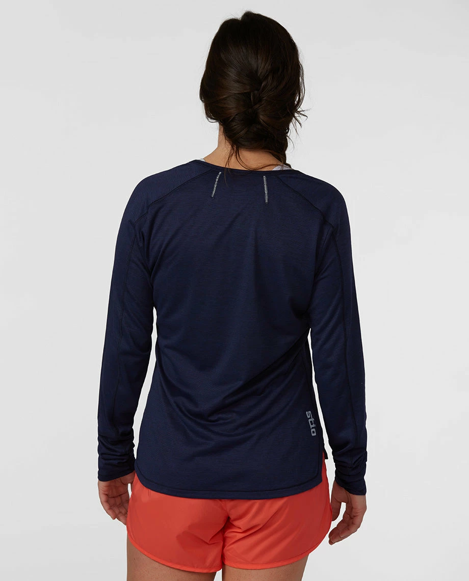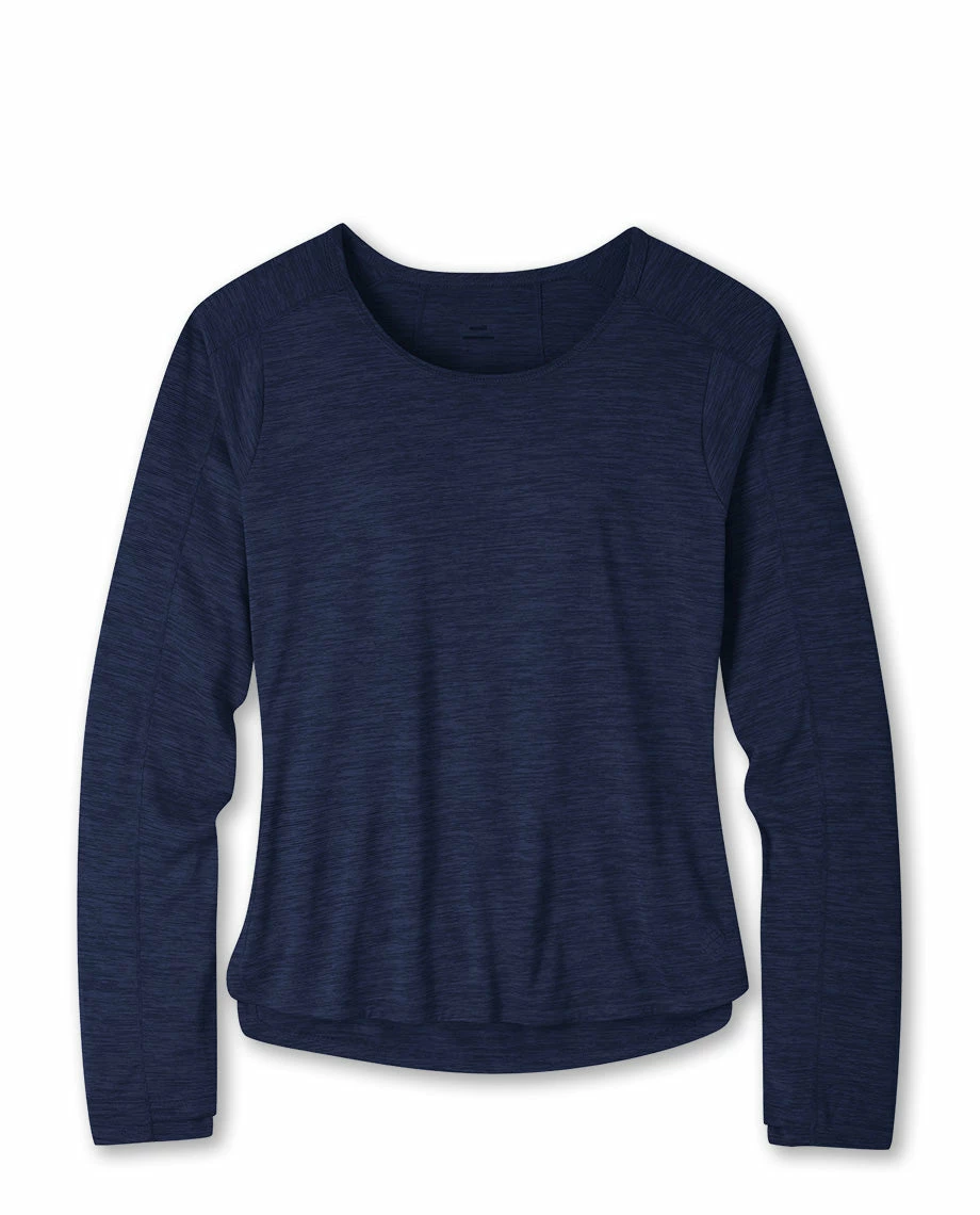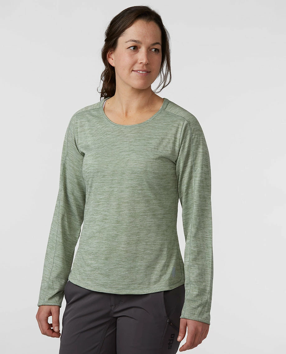 Athletically shaped and technically inclined, our long-sleeve tech tee keeps the core regulated during aerobic activity or elevated exercise. Built with Floe™ fabric, the material wicks and cools more quickly when temps spike. The soft fabric feels cool to the touch, sits comfortably on skin and also prevents odor accumulation. A slightly open, moderate drop neckline—along with a split side hip vent—adds cooling airflow. A half-set, half-raglan sleeve with thumbholes stays put while mid-hip, curved-hem length covers up when moving fast.