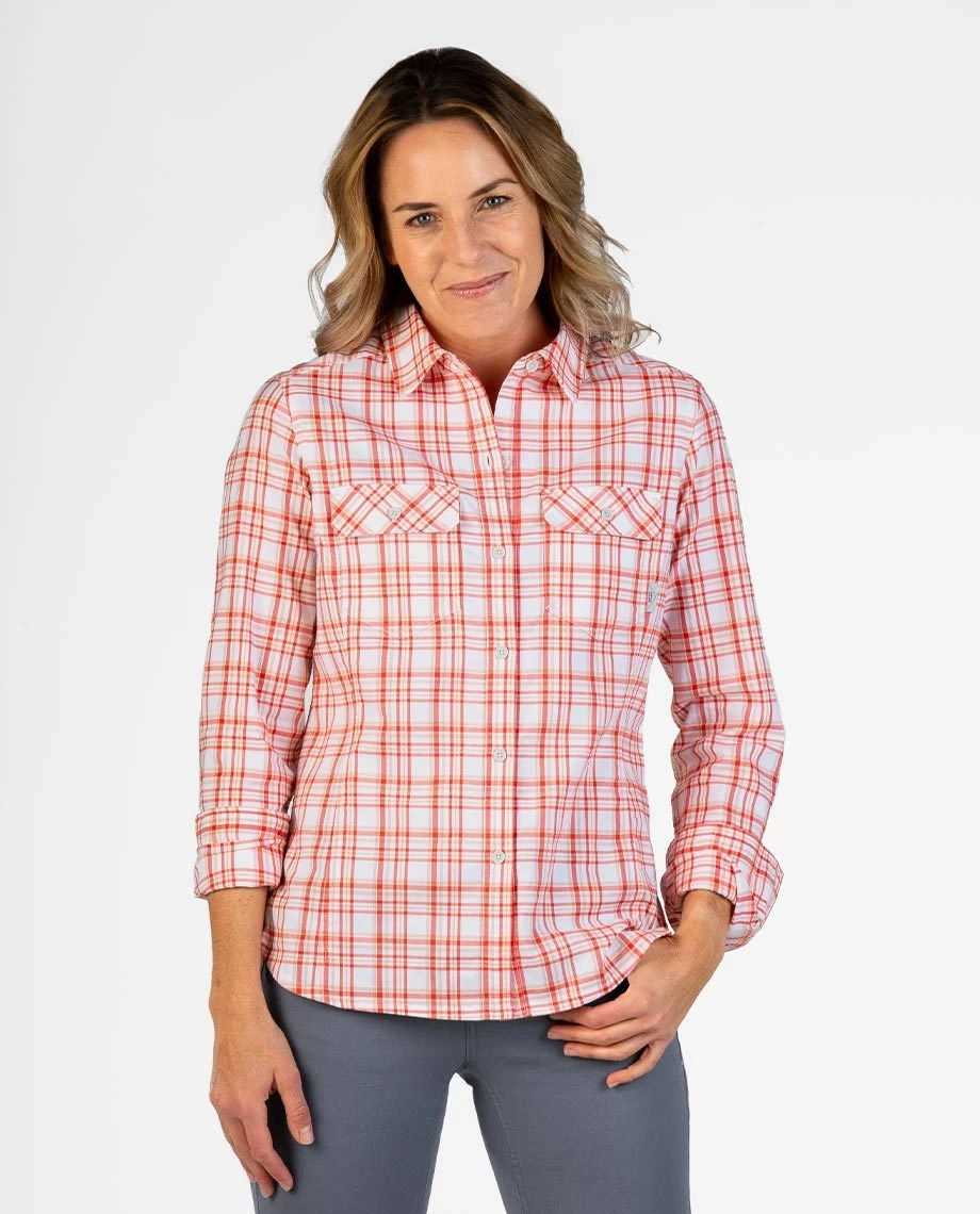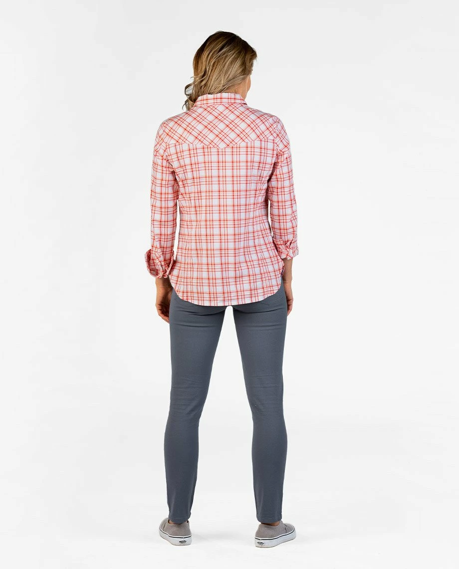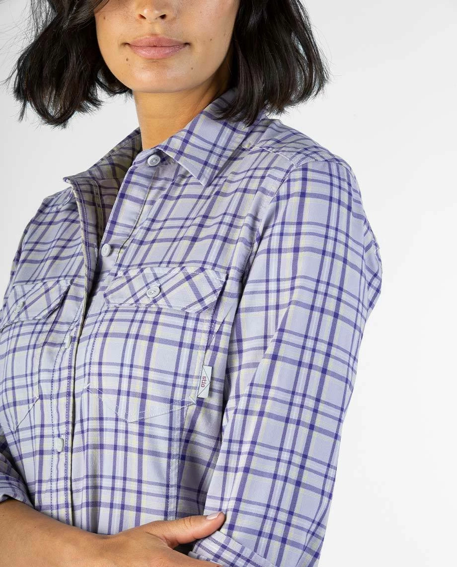 Designed in collaboration with our friends at American Prairie Reserve, the Lone Tree Shirt pays mountain-inspired homage to the classic field shirt—a breathable, moisture-wicking flannel with a heritage-inspired dose of style. Made with a lightweight cotton/poly twill fabric, the Lone Tree shields you from harsh rays, manages moisture when you’re working hard, and dries quickly. Subtle western detailing a custom yarn-dyed plaid pattern, easy rolling cuffs and princess seams provide reliable, feminine style for when it’s time to cut loose. A portion of all proceeds from the Lone Tree Shirt will go to support American Prairie Reserve.