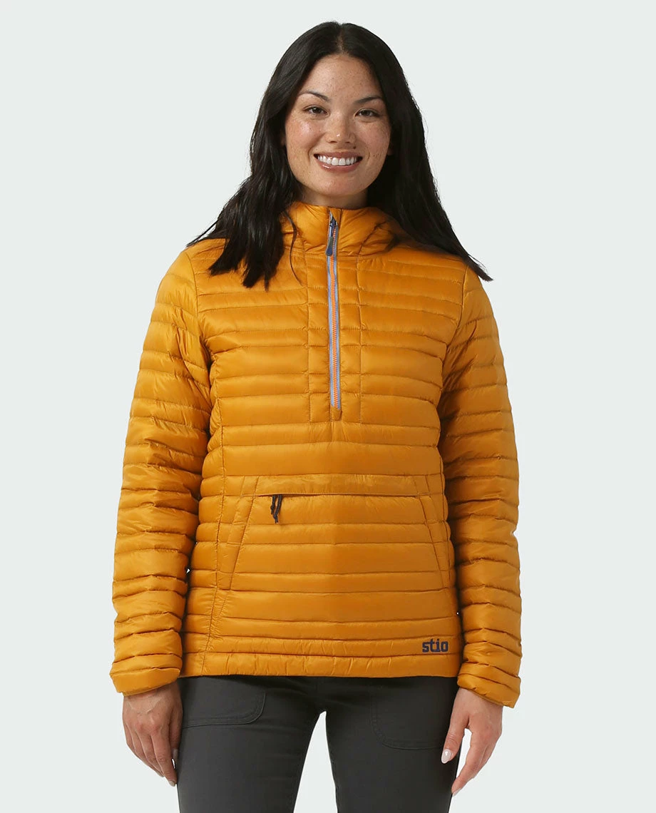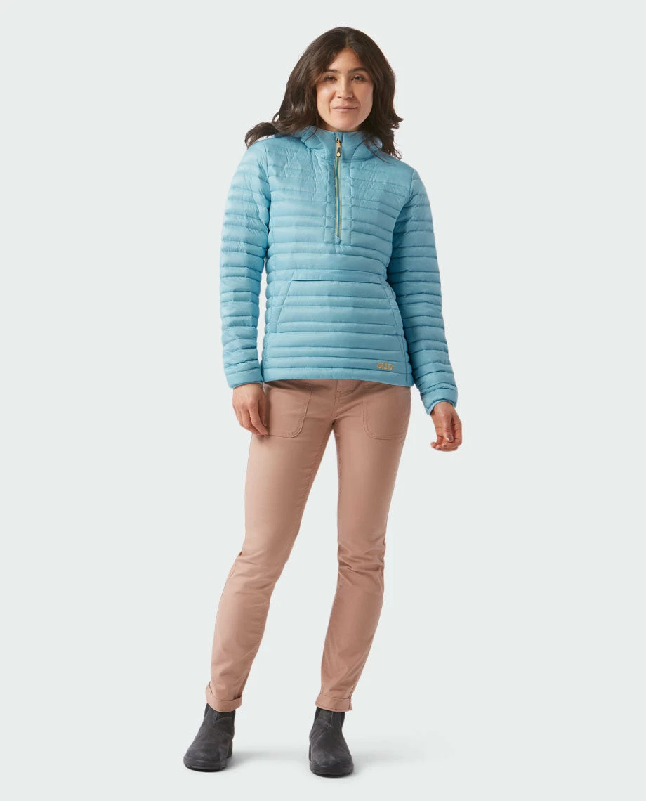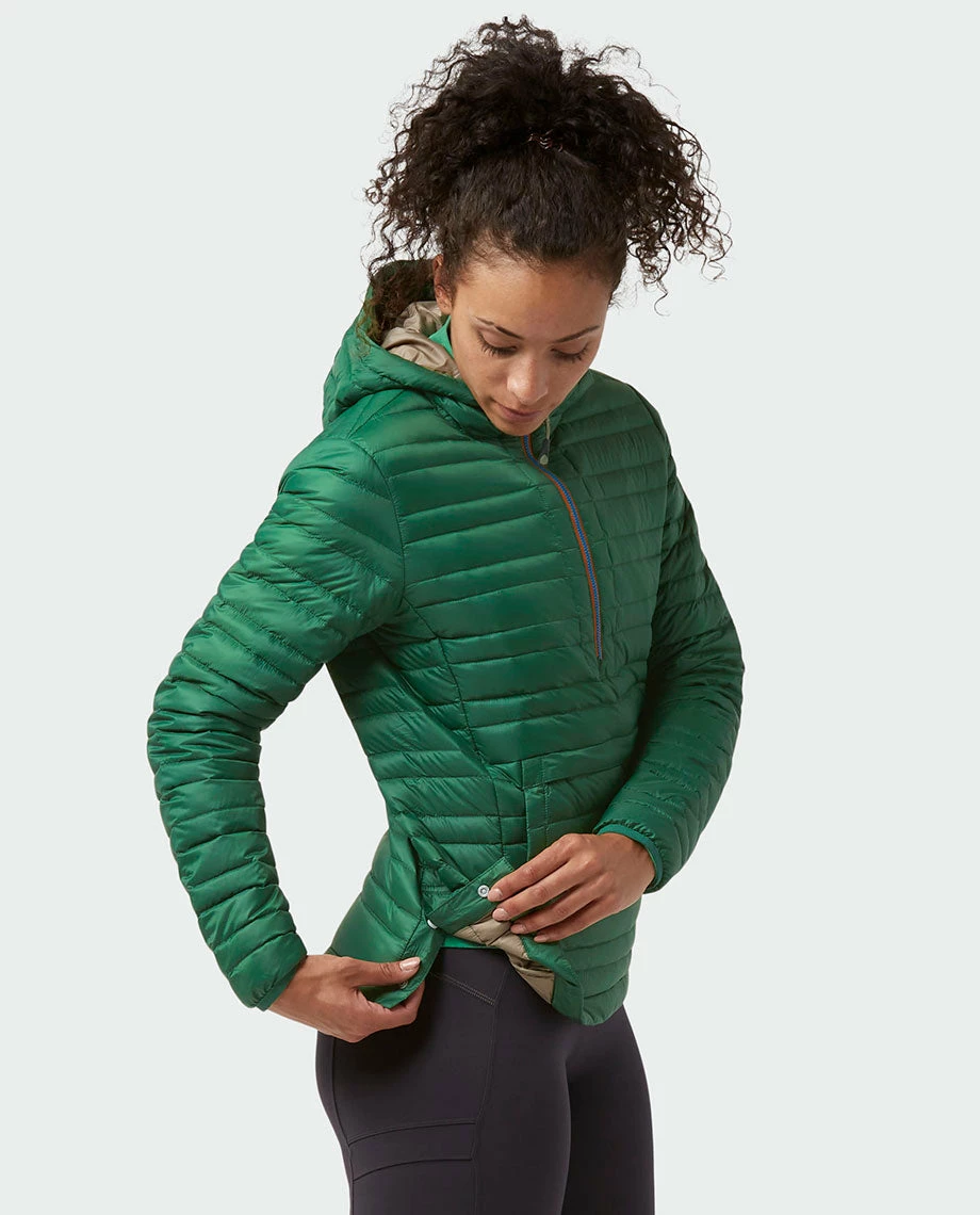 Combining premium technical materials with laid-back yet flattering style that fits like your favorite hoodie, the Pinion Pullover is perfect for chilly camp nights and breezy summer concerts. Featuring a lightweight, abrasion- and weather-resistant Pertex® Quantum ripstop shell, the Pinion Pullover packs lightweight, cozy warmth thanks to its responsibly-sourced 800-fill HyperDRY™ water-repellent down. The pass-through front pocket keeps your hands warm when you’re relaxing around the campfire or strolling downtown for cocktails, and the zippered kangaroo pocket doubles as a stuff sack and turns the jacket into a soft, comfy camp pillow.