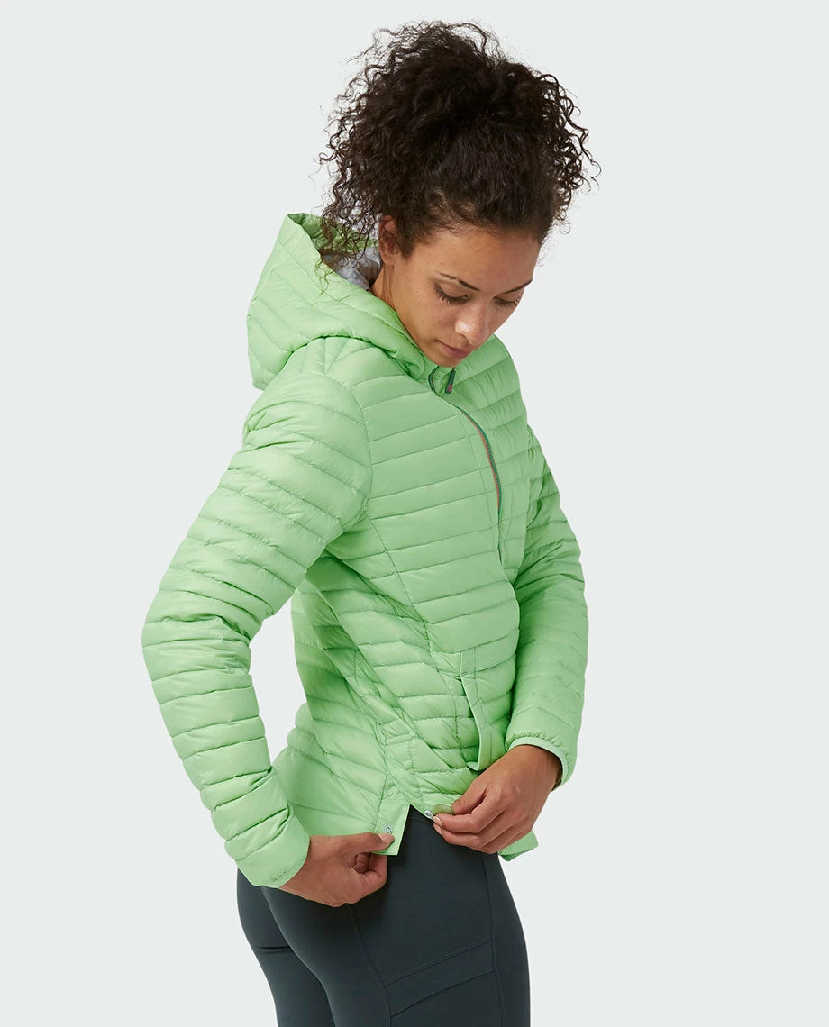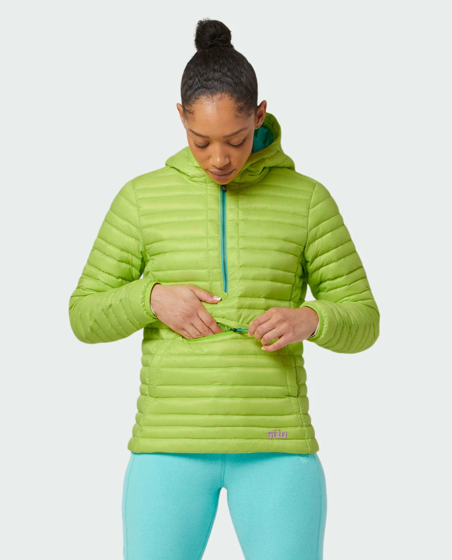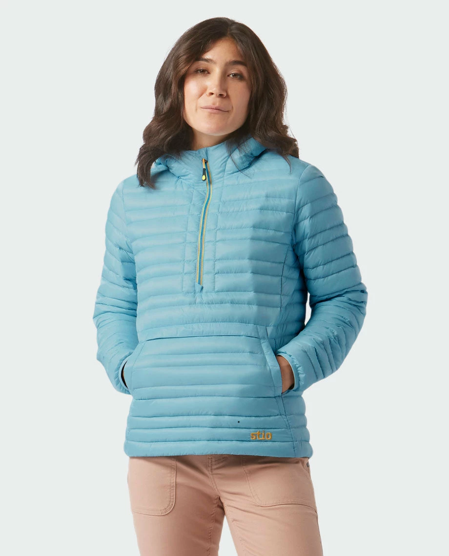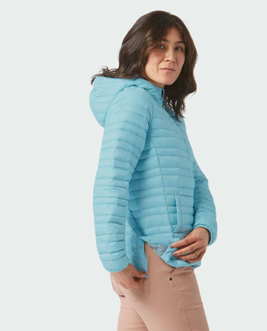 Combining premium technical materials with laid-back yet flattering style that fits like your favorite hoodie, the Pinion Pullover is perfect for chilly camp nights and breezy summer concerts. Featuring a lightweight, abrasion- and weather-resistant Pertex® Quantum ripstop shell, the Pinion Pullover packs lightweight, cozy warmth thanks to its responsibly-sourced 800-fill HyperDRY™ water-repellent down. The pass-through front pocket keeps your hands warm when you’re relaxing around the campfire or strolling downtown for cocktails, and the zippered kangaroo pocket doubles as a stuff sack and turns the jacket into a soft, comfy camp pillow.
