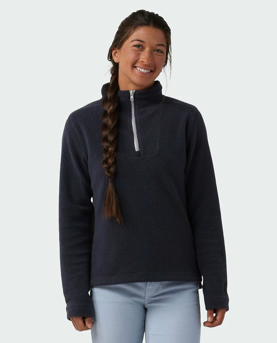 At home or on the road, the natural sweater-style feel of shearling fleece makes our new Rawlins half-zip a local favorite in towns where relaxed, casual is always in style. Soft, lofted fleece creates dawn-to-dusk comfort while an oversized collar contributes distinctive cozy-yet-sophisticated style for a more elevated take on midwinter layering. The relaxed fit layers easily and streamlined styling elements match well with jeans for the peaks and valleys of the mountain social scene.