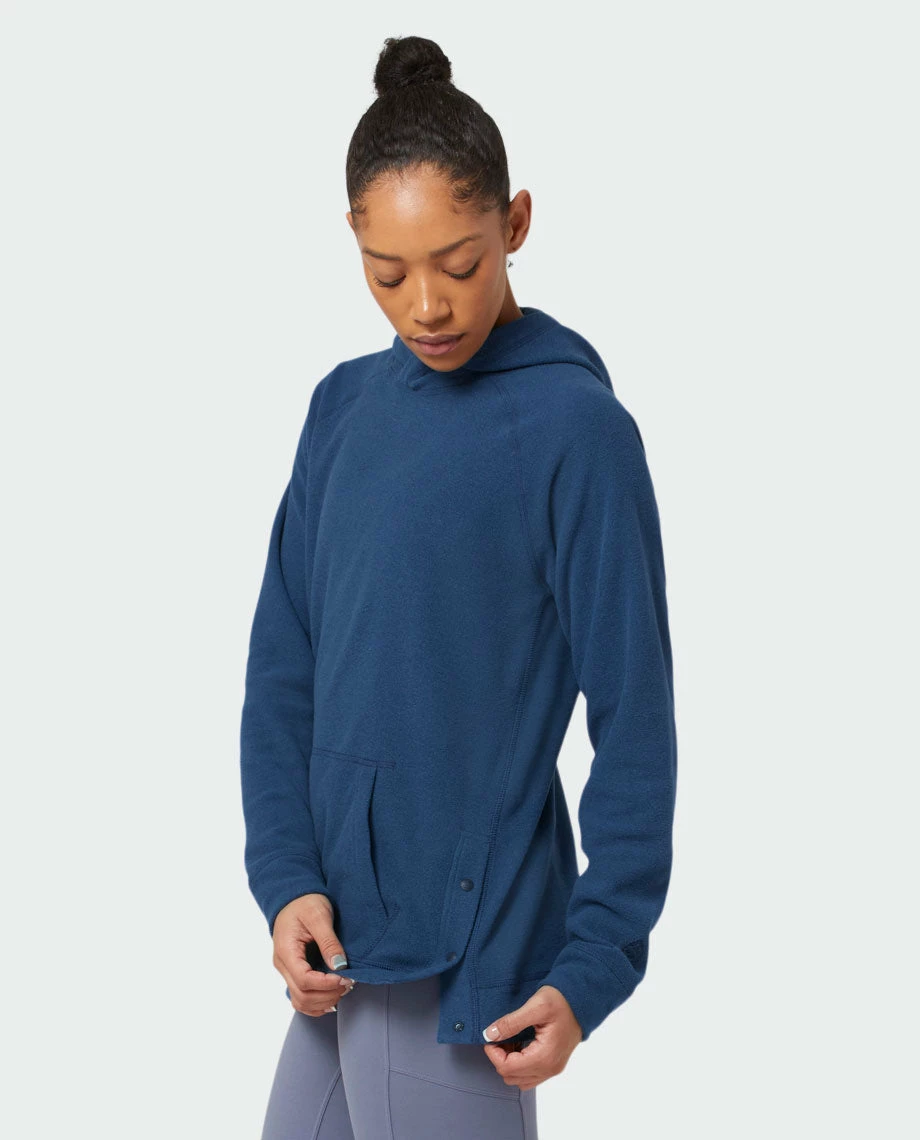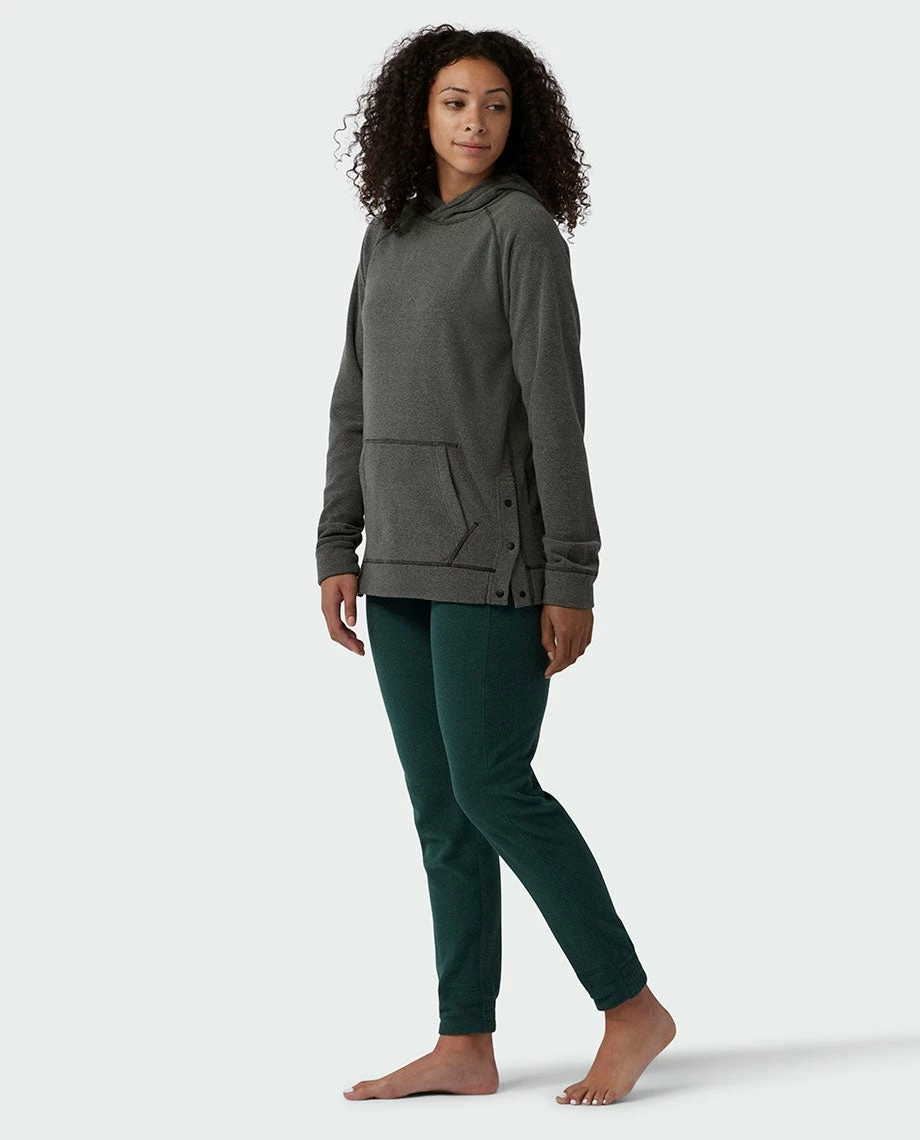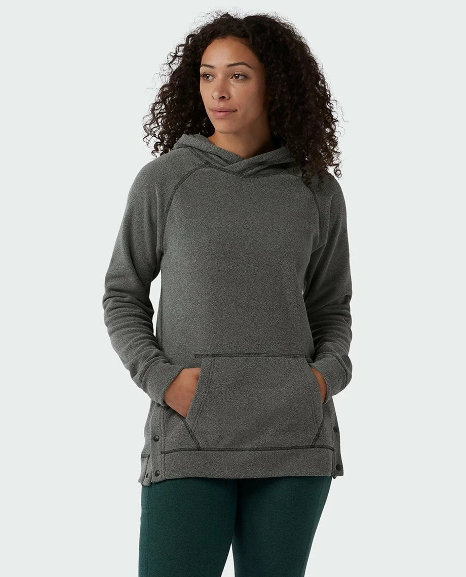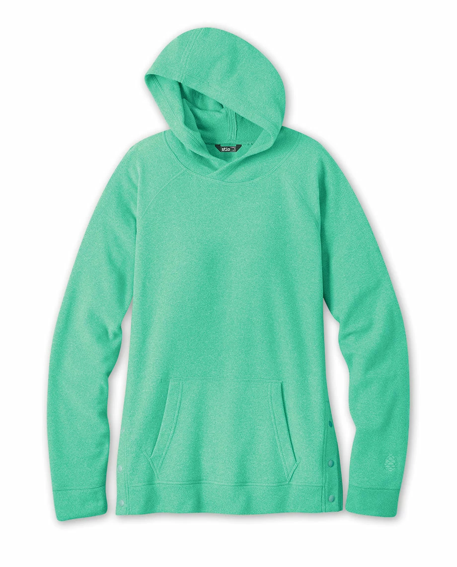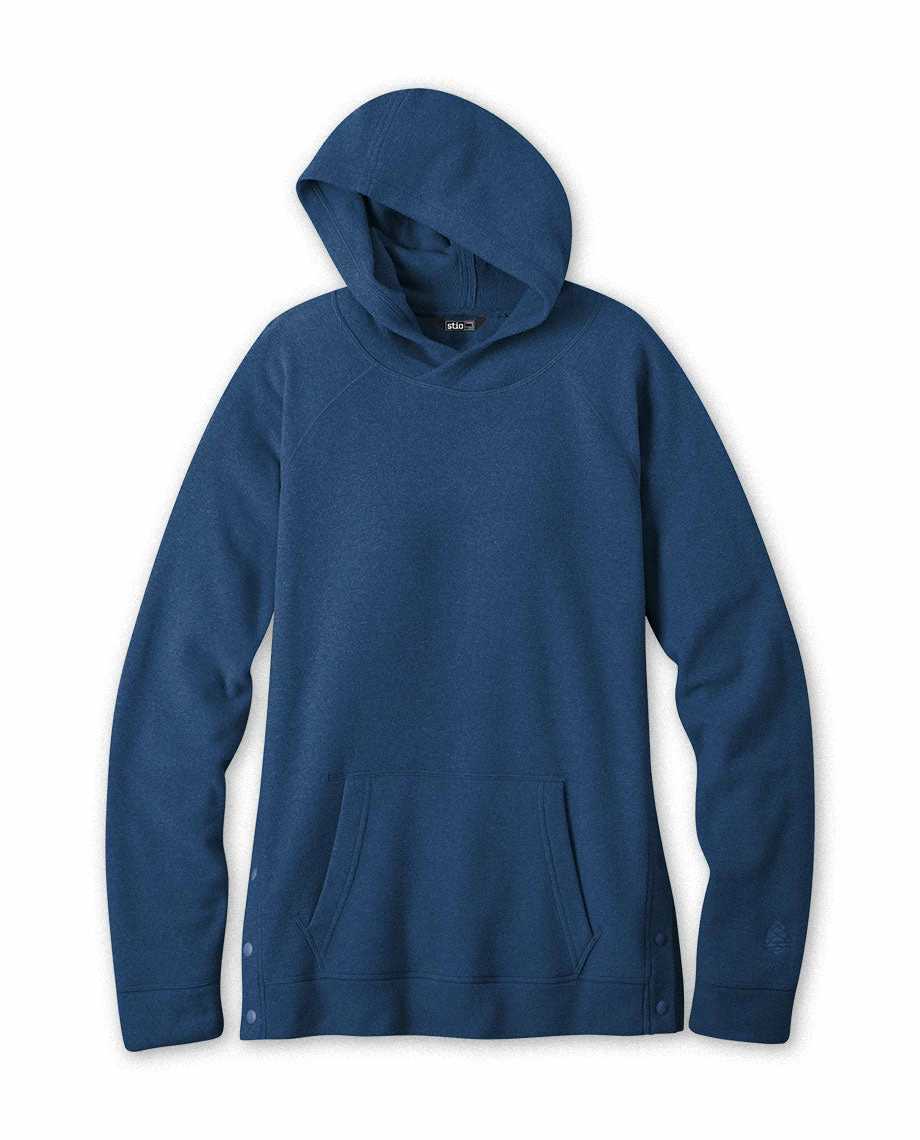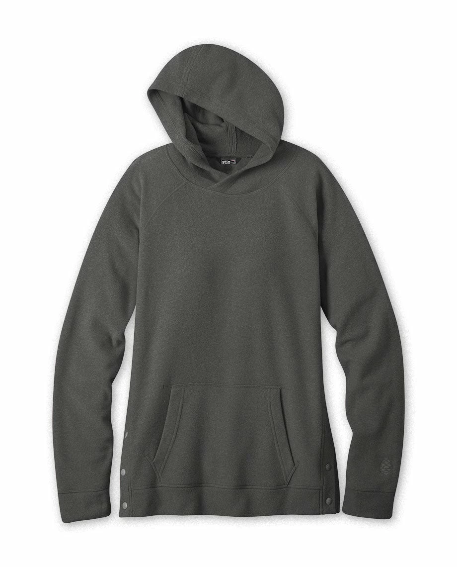 - Custom Stio® snaps at side hem for styling